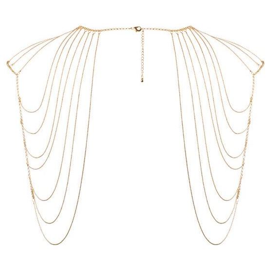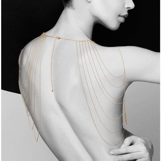 ¿Habias visto alguna vez una cadena para hombros y espalda? Bijoux indiscrets a creado el complemento perfecto para mujeres como tú. Déjate seducir por la belleza de esta preciosa cadena en color dorado. Levanta pasiones y miradas, ideal para complementar con cualquier outfit. ¡Serás la reina de la fiesta! Descubre tu lado más sensual y seductor, dejando claro que eres una chica llena de fantasías. Nunca fue tan buena idea dejar la espalda al aire. La Cadena para Hombros y Espalda es 100% ajustable y reversible, para que seas tú la que decidas como llevarla, puedes atarlo delante o detrás. Llévalo en tus momentos más íntimos o utilízalo para darle el toque final a tu estilismo nocturno. No contiene níquel, puedes llevarlo sin riesgo de tener reacciones alérgicas. ¡Sal a la calle, la noche es tuya!