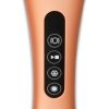 El modelo luxury además de tener el cabezal flexible con el que podrás estimular el clítoris o cualquier otra zona del cuerpo, en el otro extremo del juguete dispone de una pequeña placa de metal que proporciona frío y calor con muchos beneficios para la musculatura. El efecto frío alcanza hasta 5 grados y el efecto calor hasta los 45 grados.